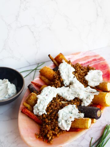 Roasted Rainbow Carrots with Lentils and Yogurt Sauce