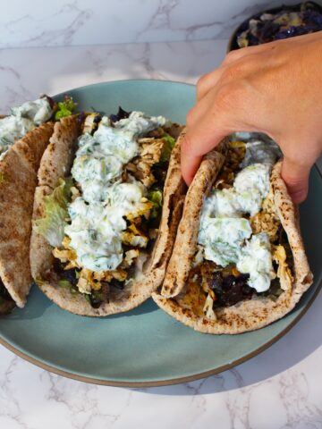Shredded Tofu Cabbage "Shawarma" Gyros with Tzatziki